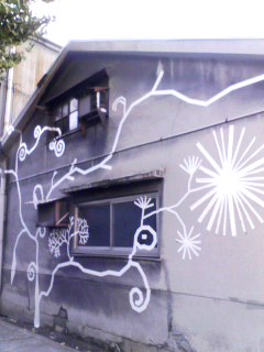 とぼとぼと此花区住宅街をですねぇ、徘徊しておりましたらですねぇ、と、と、と突然目の前にどどどんっ!とこんな超ドープなアートがっっ!!これ家ですよ!…もちろん無人なんでしょうが…(>.<)y-~ほんまでもこれ普通の住宅街にあるんすよ 素直に「なんぢゃあ、こらぉ?て、てか、すげーな!」ちゅうのが率直な意見でした(;´д`)